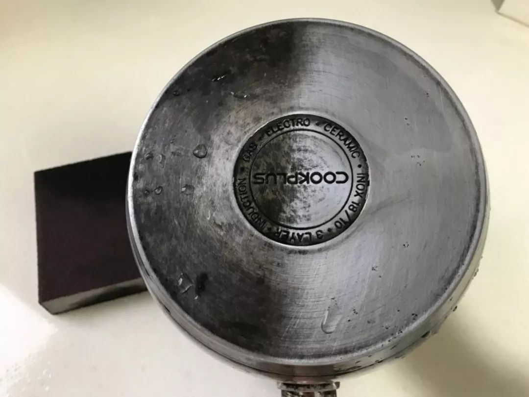 3.將鍋和金剛砂海綿用清水沖洗干凈,就大功告成了,整個(gè)去除 鐵銹的過(guò)程十分的簡(jiǎn)單。
